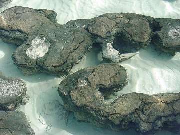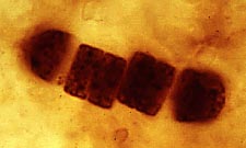 Цианобактерии, или сине-зеленые водоросли, появились в Архее, не позднее чем 3.5 млрд. лет назад. "Изобретатели" фотосинтеза. Были основными производителями кислорода в древних океанах, вплоть до появления эукариотических водорослей. Процветают и поныне. В Архее и Протерозое цианобактериальные пленки и "маты" покрывали значительные участки морского дна. В результате жизнедеятельности цианобактерий образовывались строматолиты - слоистые известковые постройки. В некоторых экстремальных биотопах (например, в прибрежных пересоленных лагунах в Австралии) строматолиты образуются и по сей день. Помимо цианобактерий, в Архее и Протерозое существовало огромное разнообразие других прокариотических организмов. К сожалению, по ископаемым остаткам крайне трудно что-то сказать об их образе жизни, метаболизме и других важнейших свойствах. Есть косвенные свидетельства, что огромные залежи железных руд в Протерозое сформировались благодаря деятельности железобактерий. Структуры, напоминающие ископаемых бактерий, . Однако твердой уверенности в биологическом происхождении этих структур пока нет. См. также: A.Yu.Rozanov. Bacterial Paleontology (в статье - уникальные фотографии ископаемых бактерий) |