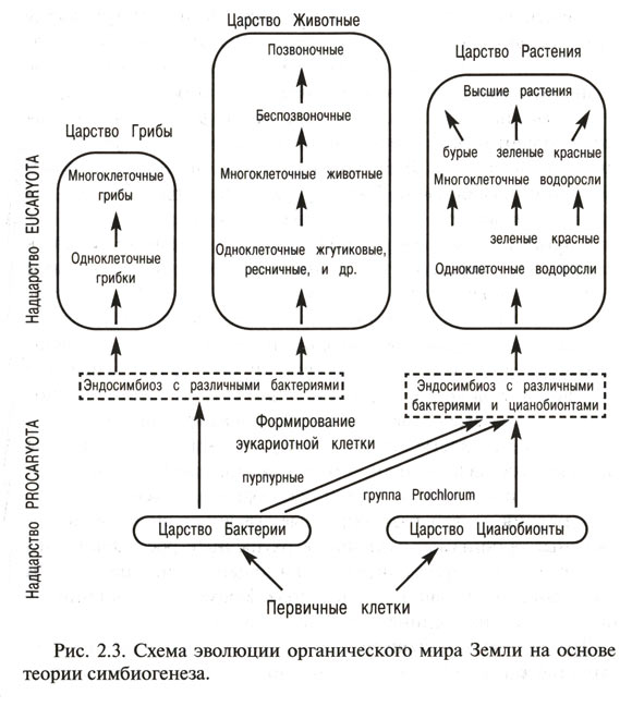 На рис. 2.3 приведена схема эволюции органического мира Земли согласно теории симбиогенеза.