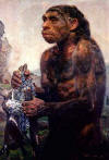 Homo neanderthalensis Неандертальцы населяли Европу и Зап. Азию (от Испании до Узбекистана) в конце плейстоцена (200 000 - 28 000 лет назад). Климат тогда был холоднее, и за время существования неандертальцев несколько раз наступали ледниковые эпохи. Неандертальцы, по всей видимости, НЕ являются прямыми предками совр. людей, они независимо произошли от питекантропов. Сравнение митохондриальных ДНК показало, что линии, ведущие к неандертальцу и современному человеку, разошлись 500-600 тыс. лет назад (точнее говоря, это время, когда существовала их последняя общая "праматерь"; общие "праотцы" теоретически могли быть и позже). Неандертальцы отличаются от совр. человека более низким лбом, выступающим затылком, надбовными дугами. Объем мозга - как у совр. людей или даже больше. Уже умели разводить огонь. Питались почти исключительно мясом (охота), каннибализм был очень распространен. Появились первые мистические/религиозные верования: они уже хоронили своих мертвецов и украшали могилы цветами. Культура неандертальцев (т.н. "мустьерская", или, что то же самое, среднепалеолитическая культура) - это, прежде всего, обоюдоострые рубила, заточенные более качественно, чем аналогичные орудия H.erectus; а также разнообразные отщепы, использовавшиеся для разделки туш. У неандертальцев имелись также деревянные копья для ближнего боя с каменными наконечниками. В более позднее время, уже во время контактов с сапиенсами (см. ниже) у неандертальцев появляются зачатки искусства (ожерелье из медвежьих когтей, нечто вроде "флейт" - кости с просверленными дырочками, которые, впрочем, могли служить для разведения огня, а не для музыкальных упражнений; см. также внизу - сообщение о недавно найденной неандертальской "скульптуре". Большой иллюстрированный обзор о неадертальцах (составил Глеб Врублевский) |