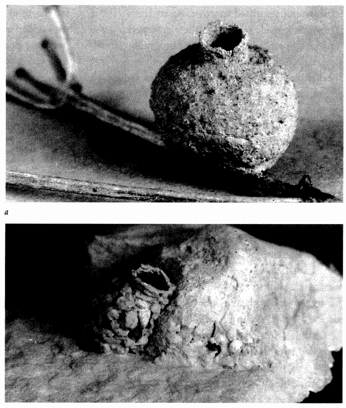 Figure 1.6 Designoid pots made by animal artisans: (a) potter wasp and (b) mason bee. {15} |