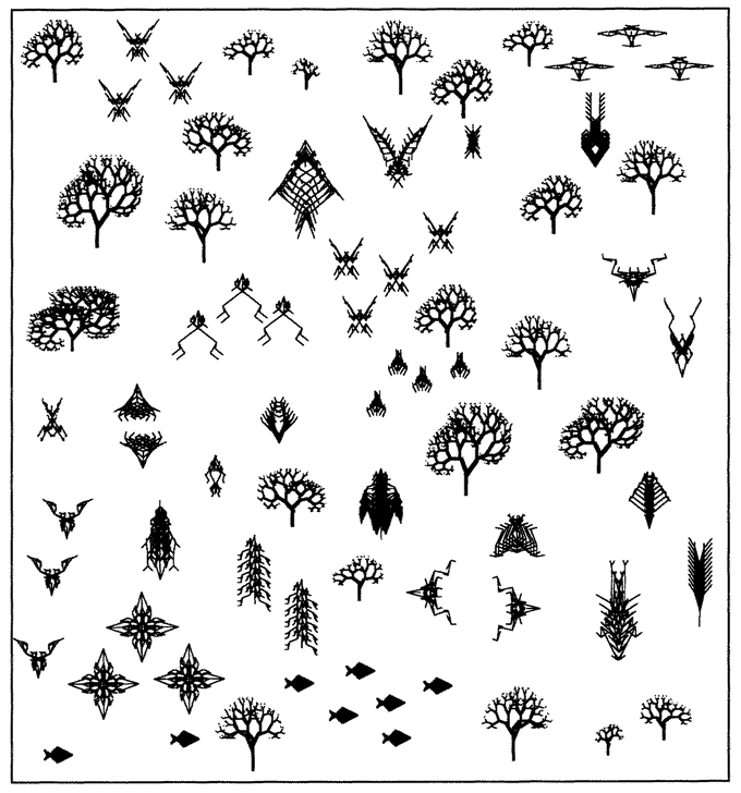Michael Rodgers read and constructively criticized early drafts of more chapters than are here printed, and advised decisively on the reconstruction of the whole book. Fritz Vollrath and Peter Fuchs gave expert readings of Chapter 2, while Michael Land and Dan Nilsson did the same for Chapter 5. All four of these experts gave generously of their knowledge when I tapped it. Mark Ridley, Matt Ridley, Charles Simonyi and Lalla Ward Dawkins read the whole book in a late draft and provided helpful criticism and reassuring encouragement in needful proportions. Mary Cunnane of W. W. Norton and Ravi {ix} Mirchandani of Viking Penguin showed generous tolerance and big-hearted judgement as the book grew, took on a life of its own and finally shrank again to more manageable scope. John Brockman lurked encouragingly in the background, never interfering but always ready with support. Computer experts are heroes, too often unsung. In this book I have used the programs of Peter Fuchs, Thiemo Krink and Sam Zschokke. Ted Kaehler collaborated with me in conceiving and writing the difficult Arthromorphs program. In my own suite of ‘watchmaker’ programs I have frequently benefited from the advice and help of Alan Grafen and Alun ap Rhisiart. The staff of the Zoological and Entomological Collections of the University Museum at Oxford lent specimens and expert advice. Josine Meijer was a willing and resourceful picture researcher. My wife, Lalla Ward Dawkins, did the drawings (though not the layouts) and her love of Darwinian Creation shines through every one of them.