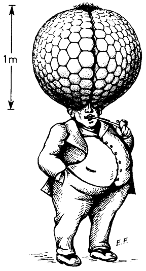 It is easy to devise measures of efficiency that would show up natural pots as less efficient than man-made ones. Efficiency is some measure of benefit divided by cost. The benefit of a pot could be measured as the quantity of water that it holds. Cost can conveniently be measured in equivalent units: the quantity of the material of the pot itself. Efficiency might be defined as the volume of water that a pot can hold divided by the volume of material that goes to make the pot itself. The hollow stone on my desk holds 87.5 cc of water. The volume of the stone itself (which I measured by Archimedes’ famous {10} Eureka-in-the-Bath method) is 130 cc. The efficiency of this ‘pot’ is therefore about 0.673. This is a very low efficiency, not surprisingly so since the stone was never designed to hold water. It just happens to hold water. I have just done the same measurements on a wineglass, whose efficiency turns out to be about 3.5. A friend's silver cream jug is even more efficient. It holds 250 cc of water while the silver of which it is made displaces a mere 20 cc. Its efficiency is therefore as high as 12.5.