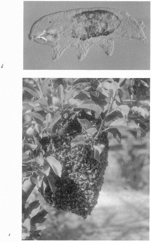 cycle. Most species of solitary wasp dig their nesting hole in the ground. The potter wasp makes its ‘hole’ out of clay — a round pot, up a tree, mounted inconspicuously on a twig (Figure 1.6a). Like the pitcher plant, this pot would score favourably on our efficiency test for apparent design. Solitary bees show a similar pattern of nesting in holes, but they feed their larvae on pollen instead of animal prey. Like the potter among wasps, many species of mason bee build their own pot nest. The pot in Figure 1.6b is made not from clay but from small stones cemented together. Apart from its resemblance to an efficient, man-made receptacle, there is something else rather wonderful about the particular specimen photographed. You see only one pot here, but there are actually four. The other three have been covered by the bee with hardened mud, to give an exquisite match to the surrounding rock. No predator would ever find the young larvae growing up in the pots. The only reason this cluster was seen, by my colleague Christopher O'Toole on a visit to Israel, is that the bee had not quite finished covering the last pot.