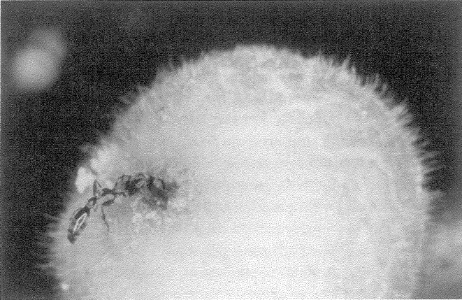nowhere else but in the enclosed ponds created by pitcher plants, and they are endowed with the jaws that the plant itself lacks. The corpses of the pitcher plant's drowned victims are devoured and decomposed by the mouthparts and digestive juices of its maggot {13} accomplices. The plant itself subsists on the detritus and excretory products, which it absorbs through the lining of the pitcher.