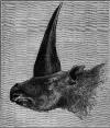 Попытки восстановить внешний облик эласмотерия бьши весьма многочисленными. Среди них — реконструкции 3. Буриана (Шпинар, 1977; табл. VIII), B.C. Бажанова и Софиева (Бажанов, Костенко, 1962; табл. III, фиг. 3), Э.У. Берри (Вепу, 1929), А.Ф. Брандта и Рашевского (Брандт, 1878), А.П. Быстрова (Громов, Мирчинк, 1937; Швырева, 1995; табл. IV, фиг. 1), Н.К. Верещагина и А.3. Сыловой (в экспозиции Зоологического музея РАН), А. Вудварда (Woodward, 1928), В.Е. Гарутта (Schaurte, 1964; Швырева, 1995), И-АДуброво и В.Д. Колганова (в экспозиции ПИН РАН; табл. IX), А.М. Казанского (по Теряеву, 1948), И. Каупа (Каир, 1841), Б. Куртена (Kurten, 1972; табл. IV, фиг. 2), У. Меттью (Matthew, 1931), В. Кобельта (Кобельт, 1903; Обермайер, 1913; табл. III, фиг. 1), М. Полесских, Е. Гаврилова и В. Ситникова (Полесских, 1951; Хромов и др., 2000; табл. III, фиг. 2), П.В. Серебровского и М. Пашкевич (Серебровский, 1935), В.А. Теряева и В.А. Ватагина (Мензбир, 1934; Теряев, 1948), К.К. Флерова (1953). В большинстве из них эласмотерий изображен покрытым шерстью животным с огромным рогом на лбу, населяющим степные ландшафты. Как правило, он изображался однорогим, хотя существуют и исключения. В одной из первых реконструкций, выполненной гравером Рашевским по рисунку А.Ф. Брандта (1878) на основе изучения черепа животного, переданного А. Кноблохом в Зоологический музей Академии наук, эласмотерий изображен двурогим (рис. 4). Основной рог, по Брандту, соответствовал вздутию лобных костей, обладал «внушительными размерами» и мог «превосходить длину всего черепа». Внушительность размеров рога Брандт подтверждает величиной кровеносных сосудов, оплетавших бугор и оставивших на нем свои отпечатки. Кроме того, образование специальной структуры лобных костей, не существующей у других носорогов и служащей для рога костной основой, позволяло также говорить об его незаурядных размерах. Обратив внимание на небольшую шероховатость на переднем конце носовых костей, А.Ф. Брандт предполагает наличие второго рога, располагавшегося на кончике морды животного и представлявшего собой невысокую роговую пластинку. В ископаемом состоянии, тем не менее, ни один из рогов эласмотерия неизвестен.