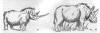 5. Реконструкции шерстистого носорога (а) и эласмотерия (б), выполненные М. Пашкевич под руководством П.В. Серебровского. Эласмотерий изображен по образцу шерстистого носорога. Реконструкции отличаются лишь в деталях (по Серебровскому, 1935).