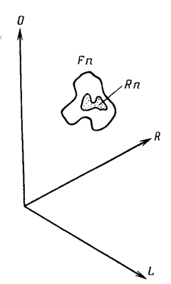 Рис. I. Схема соотношения фундаментальной (Fn) и реализованной (Rn) ниши (О - организация носителя ниши, R - ресурсы, L - лимитирующие факторы нересурсной природы)