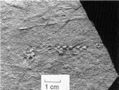 Horodyskia, 1.5 млрд. лет., Зап. Австралия. Конические зооиды прикреплены к общему столону.