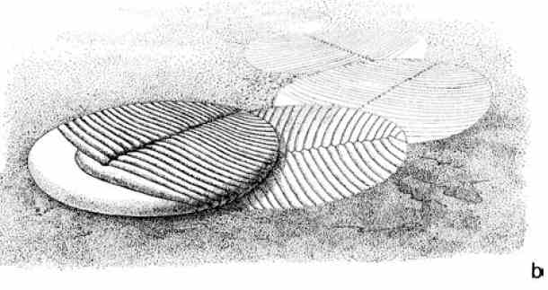 17. Биотурбация: от реснично-слизевого ползанья к перистальтическому. Об эволюции способов передвижения можно судить по ископаемым следам. До недавнего времени следы вендских животных практически невозможно было связать с конкретными организмами, однако недавно были найдены такие следы в непосредственной ассоциации с отпечатками животных, их оставивших (в первую очередь это Ёргия и Кимберелла). Максимальная длина оставленной ёргией "дорожки" - 4.3 метра. Следы представляют собой серию очень четких отпечатков брюшной поверхности ёргии. Животное ползло "короткими перебежками", делая длительные остановки, и выделяло много слизи, подобно современным турбелляриям или гастроподам.