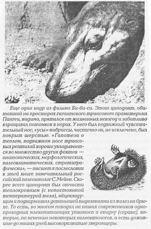 И опять я вижу лицо юного скептика, говорящего: «А кто это может доказать? Ведь никогда мы не найдем териодонта с еще мягким и теплым носом, и никогда он не пройдет перед нами, чтобы подтвердить гипотезу о его походке!» Приходится признаваться в известной справедливости этих замечаний. Мы и в самом деле не можем подтвердить прямыми наблюдениями многие наши гипотезы. Все же не будем забывать, что градусник прямо в Солнце тоже никто не будет заталкивать, но едва ли тот же скептик сомневается в надежности данных о солнечной температуре. Невозможность прямого наблюдения не обязательно лишает гипотезу научной надежности. Ведь каждая обоснованная гипотеза органично входит в общие научные представления, косвенно подтверждается ими и косвенно же подтверждает их. Важно только, чтобы гипотеза не была изолированной, а была вплетена в общую ткань фактов, законов, принципов, а также других гипотез. И это тоже хорошо показано в книге А. А. Гангнуса. Гипотеза о теплом, подвижном носе триасовых рептилий хорошо укладывается во множество других фактов — анатомических, морфологических, палеоклиматических, стратиграфических. И пока в этой совокупности гипотетических, но очень правдоподобных представлений не найдено существенного изъяна, у нас нет оснований презрительно к ним относиться. То же можно сказать и о многих других предположениях, о которых рассказывает своим читателям А. А. Гангнус.