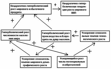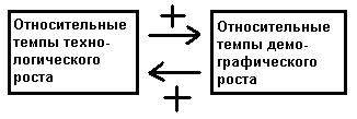 Подчеркнем, что связь между технологическим развитием и демографическим ростом не может анализироваться при помощи каких-либо простых причинно-следственных моделей, ибо мы имеем здесь дело с действительно динамическим нелинейным отношением между двумя процессами, когда каждый из них является и причиной, и следствием другого.