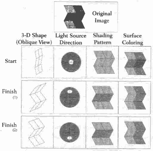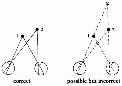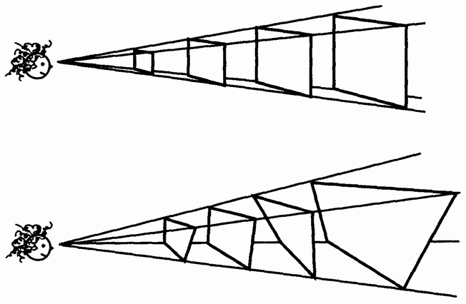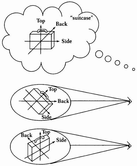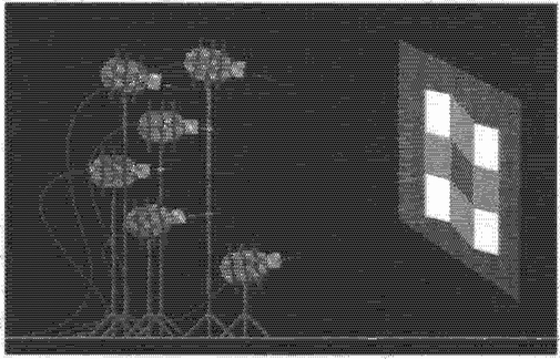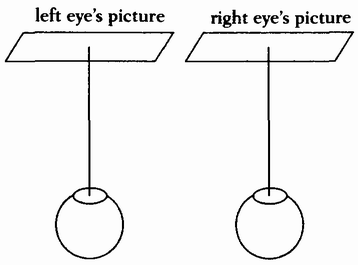 In movies we are often shown a scene from a robot's-eye view, with the help of cinematic conventions like fish-eye distortion or crosshairs. That is fine for us, the audience, who already have functioning eyes and brains. But it is no help to the robot's innards. The robot does not house an audience of little people — homunculi — gazing at the picture and telling the robot what they are seeing. If you could see the world through a robot's eyes, it would look not like a movie picture decorated with crosshairs but something like this: