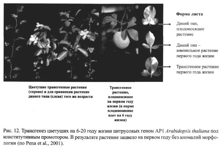 Pena L., Martin-Trillo M., Juarez J. et al. 2001 . Constitutive expression of Arabic/apsis LEAFY or APETALA 1 genes in citrus reduces their generation time // Nat. Biotechnol. Vol. 19. No. 3. P. 263-267.