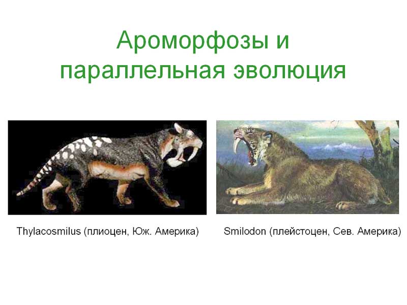 В последние десятилетия существенно изменились представления о том, каким образом происходили в ходе эволюции крупнейшие прогрессивные изменения (ароморфозы). Оказалось, что во многих случаях переход на более высокий уровень организации происходит не в какой-то одной эволюционной линии, а в нескольких, развивающихся параллельно. При этом отдельные признаки, из которых складывается "ароморфоз", иногда появляются в разных линиях почти одновременно, а иногда – в разное время и даже в разном порядке. Прогрессивные признаки постепенно накапливаются, пока наконец в одной или немногих линиях они не соберутся все вместе.