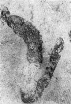 Recently reported problematic discoidal and trace-like fossils from tidal sandstones 1.2 Ga old from southwestern Australia (Rasmussen et al., 2002) do not show convincing evidence of their metazoan nature. More promising are the macroscopic worm-like organisms discovered in the lower Neoproterozoic deposits in Huainan District, Anhui Province, of the northern China Platform (Wang, 1982). The age of the rocks is believed to be ca. 740 Ma. These carbonaceous fossils resemble thin dark filaments15-20 mm long and show a very fine annulation (or segmentation). Known as Protoarenicola and Pararenicola, these fossils were assigned to the oldest metazoans, probably annelid worms and pogonophorans. In addition to the general worm-like form, size, and kind of segmentation, these organisms show a broad, circular aperture or proboscis-like structure on one, presumably anterior, end of their slender body. The opposite (posterior) end is rounded.