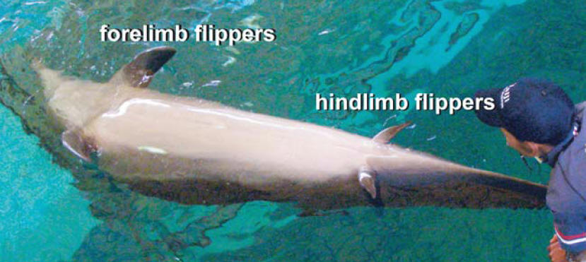Яркий пример атавизма: дельфин с задними конечностями. Из статьи Thewissen et al., 2009. From Land to Water: the Origin of Whales, Dolphins, and Porpoises.